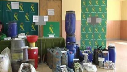 La guardia Civil ha expuesto en San Sebastián el material incautado ETA tras las últimas detenciones de dos presuntos miembros de ETA en la localidad guipuzcoana de Legorreta.