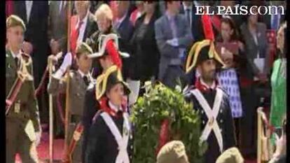 La patrulla Águila surca los cielos del desfile del Dos de Mayo en Madrid