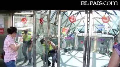 La policía ha acordonado la Puerta del Sol ante las protestas convocadas por el Movimiento 15-M. Las cámaras de EL PAÍS han sido testigos del momento en que lso agentes acordonaban la zona.