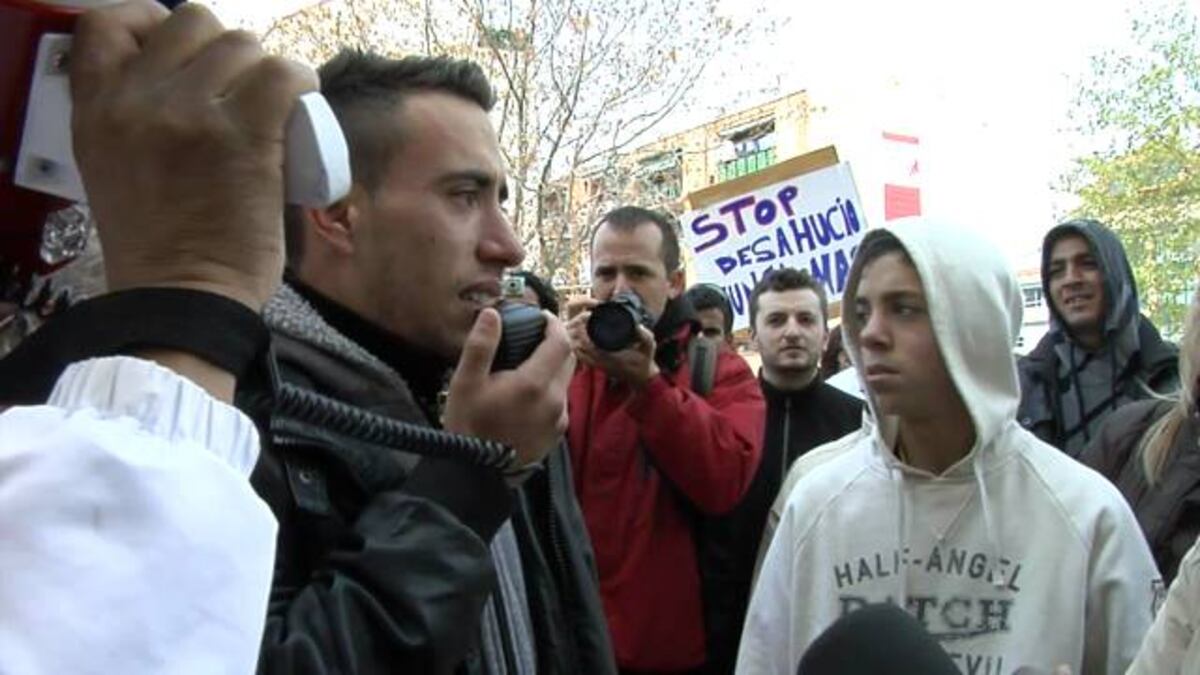 La Plataforma de los Afectados por la Hipoteca y participantes del movimiento 15-M logran posponer el desalojo de un anciano enfermo, en Carabanchel