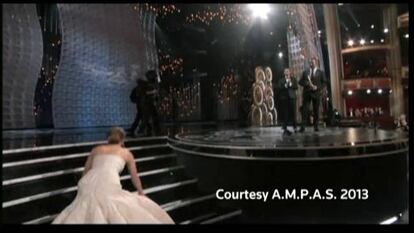 La actriz Jennifer Lawrence protagonizó una de las anécdotas de la noche. Al ir a recoger su premio como mejor Actriz Principal por su actuación en El lado bueno de las cosas tropezó al subir las escaleras. El incidente no obtuvo más repercusión que la risa de los asistentes.