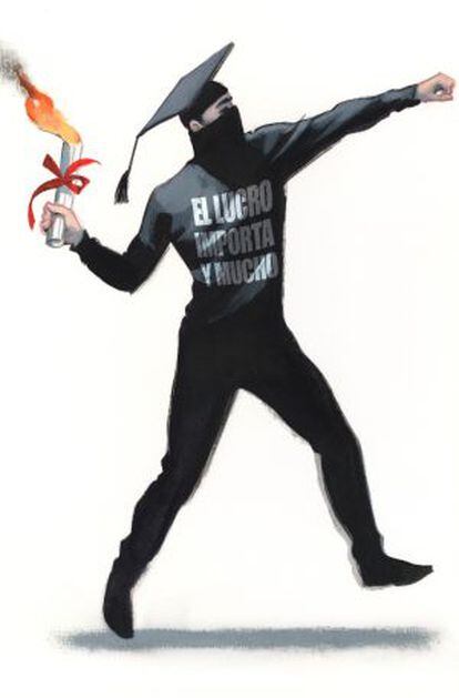 Pero la crítica que hace Fontaine a la situación universitaria chilena es la siguiente: que, en un país donde las leyes prohíben explícitamente que haya universidades privadas con ánimo de lucro, muchas instituciones hayan encontrado la manera de burlar la ley haciendo pingües negocios en este dominio. ¿Cómo? Muy sencillamente: alquilando terrenos o vendiéndolos a la Universidad o construyendo los campus universitarios a través de empresas que hacen las veces de testaferros de los mismos propietarios. Las sumas que Fontaine señala que se habrían ganado en los últimos años mediante esta burla de la legalidad (la de la “universidad fabril” la llama) son astronómicas.