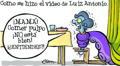 La escena sucede en el comedor de casa. Luiz Antonio está sentado en su trona, tiene delante un plato de ñoquis de pulpo, y habla con su madre. El crío le pregunta dónde está la cabeza del pulpo. Mami contesta que en el mercado, donde un pescadero la cortó. Luiz Antonio entra entonces en una espiral dialéctica con su progenitora, en la que cuestiona por qué tenemos que matar animales para comer. “¿Por qué mueren? ¡Tenemos que cuidar a los animales, no comerlos!”. La microobra acaba muy arriba, con la madre llorando de emoción por el hijo tan compasivo que tiene y dando permiso a Luiz Antonio para que no se coma los ñoquis.