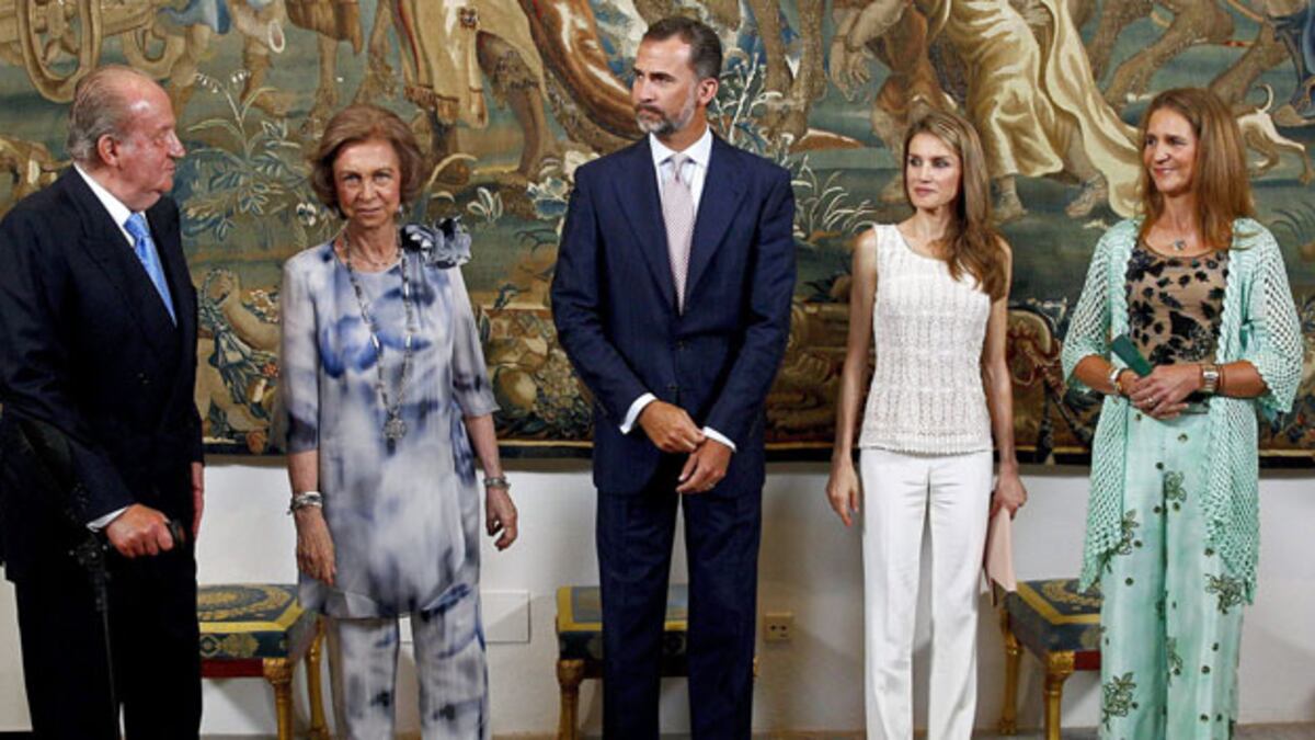 Cena de verano tras un día de calor intenso bajo los arcos y artesonados góticos del palacio de la Almudaina. La familia real ofreció la tradicional recepción oficial y de gala con motivo de sus vacaciones en Marivent. Los Reyes, los Príncipes y la infanta Elena —con la ya habitual ausencia de la infanta Cristina—, presidieron cuatro de las mesas. El menú fue continental: lasaña de salmón y, de segundo, ternera. De postre, helado con frutos rojos. El vino blanco, autóctono. Asistió la cúpula del poder político de Baleares —todos los cargos son del PP—, los primeros representantes del Poder Judicial, la Fiscalía y jefes militares.