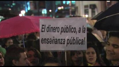 Sindicatos docentes y asociaciones de padres y estudiantes han llamado hoy a la comunidad educativa a sumarse a una huelga contra la reforma educativa promovida por Educación y que se encuentra en tramitación parlamentaria con el único apoyo del PP. La protesta, que seguirá en los próximos días, llega a uno de los puntos culminantes de la jornada con la manifestación de Madrid, una de las más de 70 que se han convocado en ciudades de toda España. Sigue la última hora de las movilizaciones aquí: