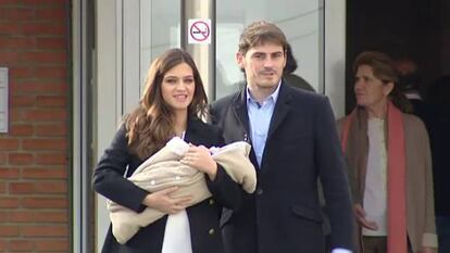 Seis días después del parto por cesárea, la periodista recibe el alta médica. El portero recogió a su familia tras el entrenamiento con el Real Madrid