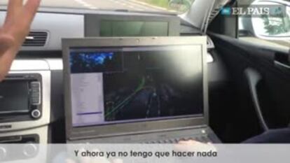 Teresa de Pedro, una veterana investigadora de inteligencia artificial del Centro Superior de Investigaciones Científicas español, compara los vehículos autónomos del proyecto Autopía con “un ciego que aprende de memoria el camino por el que tiene que ir”. Eso son los mapas. “La trayectoria de referencia”, lo llaman aquí, en la sede del CSIC en Arganda del Rey (Madrid). No todos cuentan con la capacidad de Google. Y a falta de caros radares y torres láser, en la universidad se han centrado en el control del robot, y no en la percepción. Aun así, el departamento logró trasladar hace dos años su prototipo Platero de El Escorial a Arganda: 98 kilómetros de forma autónoma por vía urbana e interurbana. Otro vehículo (manual) rodaba unos metros por delante, registrando la trayectoria de referencia y enviándola a tiempo real al coche sin conductor. Jorge Godoy, un alumno recién doctorado del departamento, lo resume así : “El coche es una persona ciega que confía en ti”. Acaba de ordenar a Platero que realice la “demo conos tipo 4”. Y el vehículo avanza y gira el volante y resuelve una recta trazando un zigzag perfecto sin tirar un solo cono. Pero si hubiera cambiado los obstáculos de sitio el coche se habría quedado bloqueado, sin saber qué hacer. Un mapa erróneo. Una vez le ocurrió algo similar: frente a los conos, se equivocó y ordenó al vehículo que se dirigiera a la rotonda. El coche resolvió la ecuación saliéndose de la calzada y empotrándose contra una grada. “Un error humano es lo que te va a pasar casi siempre”, dice Godoy.