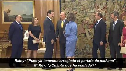 Don Juan Carlos y Rajoy bromean sobre el trascendental partido de la Selección ante Chile