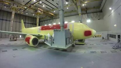 El proceso de pintado de una aeronave, que dura una semana, en menos de dos minutos