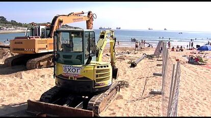 Para los bañistas que se acercan a la playa de El Sardinero, en Santander, es más difícil de lo normal encontrar un sitio en primera línea. Y es que este año tienen que compartir espacio con niños, sombrillas y excavadoras. Montañas de arena, operarios... Los veraneantes se encuentran un escenario muy diferente al habitual en esta playa premiada con bandera azul.Tras los temporales de invierno que se llevaron la arena, ahora toca rellenar lo que falta con una excavadora que traerá desde el mar hasta 5.000 metros cúbicos de sedimentos. Algunos son optimistas. Otros se quejan, se resignan y se apiñan con tal de evitar las obras. De momento, la draga ocupa el lugar más ansiado en la playa.