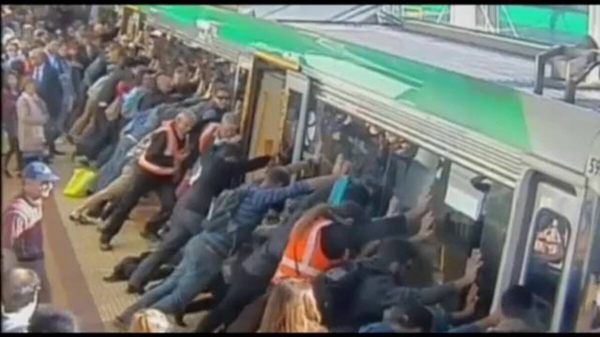 No hay metro en el mundo que no advierta a sus viajeros sobre la importancia de mirar dónde se pisa al subir o bajar del tren. Una lección que olvidó un usuario del suburbano de Perth, en el oeste de Australia. Su pierna se hundió entre el convoy y el andén y quedó atrapado. Las imágenes, grabadas este miércoles por las cámaras de seguridad, muestran el susto inicial en la plataforma hasta asegurarse de que el conductor no arrancara. Y después, una solución imaginativa: decenas de pasajeros moviendo el vagón a un lado para que el accidentado pudiera sacar la pierna. Un final feliz, puesto que el protagonista del vídeo obtuvo inmediatamente el alta médica, según los medios locales, y los solidarios pasajeros pudieron continuar su camino.