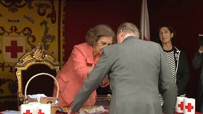 El rey Juan Carlos ha acudido la mañana del miércoles a la mesa de la Cruz Roja que presidía Doña Sofía en la puerta del Sol con motivo del Día de la Banderita.