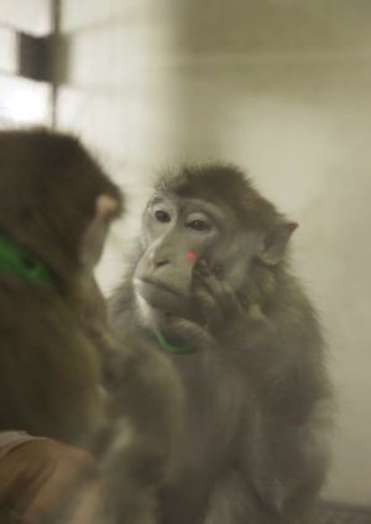 Aparcando por un momento la filosofía y de regreso al laboratorio, la pregunta surge a partir de una serie de experimentos realizados por un equipo de científicos chinos que han logrado que unos macacos reconozcan por primera vez su reflejo. Hasta ahora, esta clase de monos no había superado la llamada prueba del espejo: se le coloca una marca al sujeto en el cuerpo y reacciona tocándola directamente tras verla reflejada. Estos neurocientíficos de la Academia China de Ciencias han enseñado a los macacos a verse, sumando a esta especie a una élite que hasta ahora incluía a los grandes simios, a los delfines, a los elefantes y las urracas.