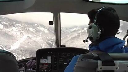 En Asturias, una vista aérea revela la cantidad de nieve acumulada y la situación complicada de las comunicaciones con León. También en helicóptero, obligado a dar la vuelta ante el muro de nubes y las rachas de viento que deja el temporal en las montañas que separan ambas provincias: