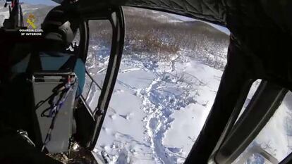No surge de ningún sumario judicial ni implicará la detención de peligrosos delincuentes pero es otra de las tareas de la Guardia Civil. Agentes del instituto armado se desplazan estos días en helicóptero para llevar alimentos a las zonas aisladas por el temporal de nieve. No solo productos de primera necesidad para familias incomunicadas, las aeronaves cargan también alpacas de paja que lanzan desde el aire para evitar muertes del ganado allí donde la nieve lo cubre todo. En las imágenes, se ve una de las actuaciones en Cantabria.