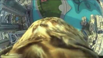 Darshan abre sus majestuosas alas de águila imperial y emprende el vuelo desde el rascacielos más alto del mundo, en Dubái. Una pequeña cámara colocada entre sus plumas graba su hazaña, desde el suelo recibe algunas indicaciones y continúa su viaje. A una altura de 830 metros, desde el rascacielos de Dubái Burj Khalifa, saltó con una cámara que pesaba 300 gramos, lo que equivale al 10% del peso del rapaz. Su cuidador, Jacques-Olivier Travers, esperaba en tierra al ave para celebrar que ha batido un récord y ha captado unas imágenes espectaculares de la ciudad más grande de los Emiratos Árabes Unidos.