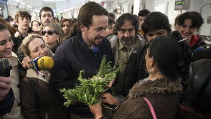 El secretario general de Podemos ha recorrido este viernes las calles de Cádiz, donde horas antes del mitin de final de campaña en el velódromo de Dos Hermanas (Sevilla), ha visitado el mercado de abastos gaditano acompañado de la candidata de este partido a la Junta de Andalucía, Teresa Rodríguez. Durante el recorrido, una vendedora ambulante se ha acercado a Iglesias para ofrecerle una ramita de romero y así desearle suerte a cambio de la voluntad, quien le ha preguntado qué le debía y dado una cantidad simbólica. En el mercado, abarrotado de los vecinos de la zona, un joven se ha presentado al líder como “Alexis de Podemos Cádiz, amigo de Alexis Tsipras, el gran Alexis”. Tanto Rodríguez como Iglesias han charlado con algunos comerciantes, que le han contado “cómo, por un lado, tienen menos ventas y, por otro, cada vez hay más familias que acuden al finalizar el horario del mercado para recoger los alimentos que sobran porque no tienen para alimentar a sus familias”, tal y como ha desvelado la candidata.