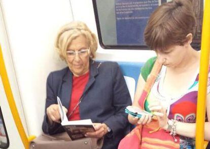 No sabemos si la foto de Carmena fue tomada o no de forma espontánea. En cualquier caso, esa es su lectura de metro. Sacad vuestras conclusiones.