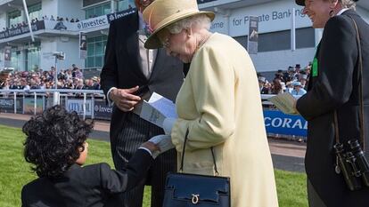 Es una de las grandes citas de carreras de caballos y la reina Isabel II no podía faltar. A su llegada el pasado sábado a la Epsom Derby, entre damas con sombrero y caballeros con chistera como manda el protocolo, se produjo un inesperado encuentro. En apenas diez segundos, un niño vestido impecablemente como si fuera un adulto más se acerca a la soberana y, con las mismas formas impecables, se retira el sombrero y le da la mano. Luego se gira con una enorme sonrisa y vuelve a su sitio. La imagen ha dado la vuelta al mundo y se cree que su protagonista podría ser Ahmed Jabed Al Harbi, uno de los hijos del príncipe heredero de Dubái. De acuerdo con los medios británicos, fue compartida en las redes sociales por el mismísimo jeque Hamdan bin Mohamed bin Rashid Al Maktoum, con el mensaje: "Nada define el respeto mejor que un correcto apretón de manos".