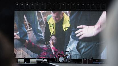 El cantante de la banda se rompe la pierna durante una actuación y la acaba sentado en una silla