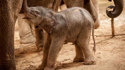La pequeña Qiyo cae como un peso muerto del vientre materno y apenas tarda un cuarto de hora en ponerse en pie. Esta cría elefante indio, una especie amenazada, es la nueva estrella del zoo belga Planckendael, a medio camino entre Bruselas y Amberes. Las cámaras han documentado sus primeros minutos de vida. Primero Phyo Phyo, la parturienta, camina escoltada de otras cuatro hembras, que la tranquilizan mientras barritan. La manada no detiene sus pasos cuando nace la cría, que queda tendida en el suelo e inmóvil. Minutos después, la animan a levantarse y caminar con sus trompas. Su llegada ha supuesto una “inmensa alegría” para el zoo, aseguran sus responsables, ya que recientemente sufrieron la pérdida de otra cría de elefante que nació enferma. Qiyo, que significa “generaciones felices” en japonés, nació en la medianoche del martes al miércoles tras 22 meses de gestación y pesó 87 kilos frente a los más de 3.500 que pesa su madre. Este viernes será presentada al público en El templo de los elefantes, la atracción estrella del parque, y en breve conocerá a su padre, apartado para que la manada se adapte a la llegada de un nuevo miembro. Aunque viendo las imágenes y la magnífica recepción que prepararon a Qiyo, parece que en el matriarcado de Planckendael no hay ningún problema de convivencia.