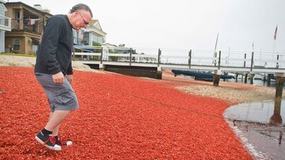 Es una escena que los testigos han definido como “surrealista”. La arena de la playa cubierta de un manto rojo de pequeños cangrejos. Esa inusual imagen es la que se han encontrado muchos bañistas en la isla de Balboa y la costa de San Diego, al sur de California (EE UU). Pertenecen a la especie Pleuroncodes planipes, también conocida como langostilla roja por su aspecto. Su hábitat natural está más al sur, en Baja California (México), y normalmente viven en alta mar, pero los científicos creen que el calentamiento del océano los ha llevado hacia el norte y los ha arrastrado hasta la costa. El agua en superficie está unos grados por encima de lo normal, por eso creen que la llegada de estos cientos de miles de visitantes podría estar anticipando el fenómeno de El Niño. Ya sucedió en otras ocasiones en los 90, aunque en menor proporción. Y para los más osados, los expertos han pedido que nadie sucumba a la tentación de comerlos. Muchos están muertos y podría estar relacionado con la presencia de un alga tóxica que se ha detectado a lo largo de casi toda la costa pacífica del país.
