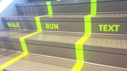 La universidad de Utah Valley divide las escaleras en tres carriles: caminar, correr y mensajes