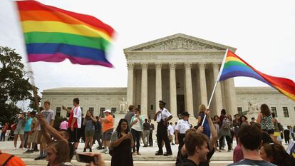 El Tribunal Supremo de EE UU legaliza el matrimonio gay en todo el país. El alto tribunal ha declarado este viernes inconstitucionales las leyes que lo prohíben en varios Estados del país. La sentencia, comparada por su alcance con la que en 1954 ilegalizó la segregación racial en las escuelas o la que consagró el derecho al aborto, despeja la vía para que las personas del mismo sexo puedan casarse en todo el país.