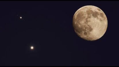 La conjunción, por supuesto, es un efecto óptico. El 30 de junio, cuando parecía que los dos planetas se iban a rozar, Júpiter se encontraba a 900 millones de kilómetros de la Tierra y Venus a 74 millones. Júpiter es 11 veces más grande que Venus, pero este último se ve más brillante por su cercanía con nuestro planeta, como ha explicado la NASA. Las conjunciones son un fenómeno relativamente habitual. En 2012, otro acercamiento de Venus y Júpiter dejó espectaculares fotografías.