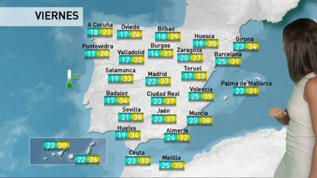 Las temperaturas no descenderán este viernes: se espera calor casi generalizado en todo el país, sobre todo en el norte. Solo se libra Galicia.