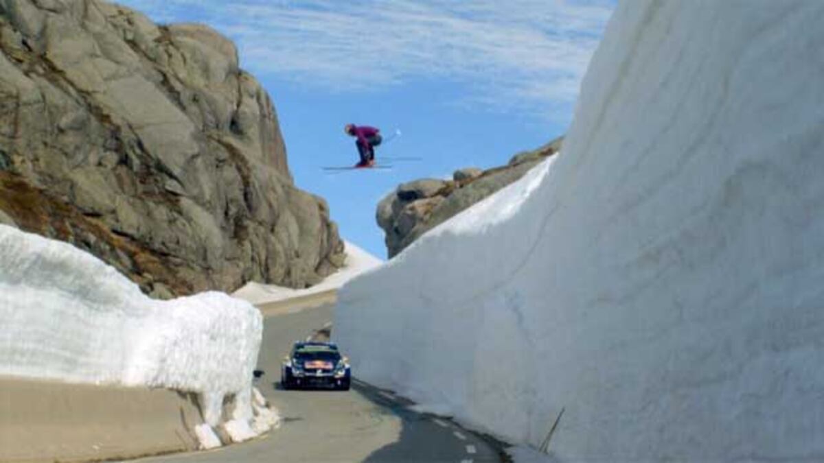 Son dos de los deportistas más célebres de Noruega. El piloto Andreas Mikkelsen compite en el campeonato mundial de rallies, el esquiador Aksel Lund Svindal sabe lo que es ganar una medalla de oro olímpica para su país. El pasado mes, a petición de sus patrocinadores, ambos subieron hasta lo alto de la carretera de Lysevegen, conocida por sus curvas cerradas y todavía con grandes bancos de nieve en sus márgenes. El reto estaba echado: ¿Quién llegaría antes a la falda de la montaña? La respuesta está en el vídeo que se ha hecho público ahora y que muestra, entre otras cosas, un espectacular salto de Svindal sobre el coche de Mikkelsen.