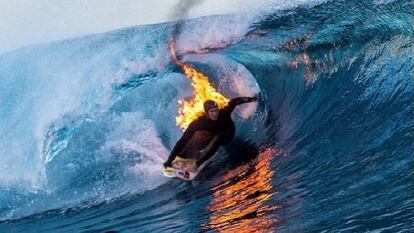 Jamie O'Brien, un conocido surfista estadounidense, ha aceptado el reto de uno de sus seguidores de Instagram y ha cabalgado el oleaje de las islas Tahití (Polinesia francesa) envuelto en llamas. El deportista extremo ha manifiestado en la red social Twitter que ha sido "un sueño cumplido", pero reconoce que para lograrlo han sido necesarios 12 meses de preparación y un equipo de 25 personas.