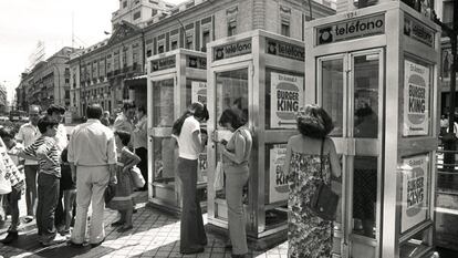 Los teléfonos públicos comenzarán a desaparecer en 2017. La Puerta del Sol, con 12 aparatos, es uno de los núcleos de resistencia de estos artefactos del siglo pasado