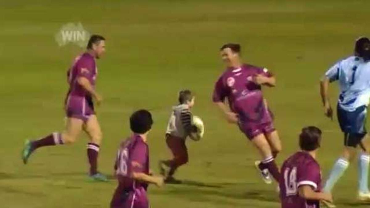 Apareció en medio del partido junto a uno de los palos. Aparentemente perdido y sin saber muy bien qué hacer. Hasta que un jugador reparó en su presencia y le pasó la pelota. Lo que ocurrió a continuación es una carrera que el pequeño, del que solo que conoce que tiene 4 años de edad, nunca olvidará. Una carrera única, atravesando todo el campo entre moles humanas de casi dos metros y más de 100 kilos. Los jugadores, de los equipos de leyendas de Nueva Gales del Sur y Queensland, se prestaron al juego cayendo dramáticamente a su paso como si no lograran atraparlo. Incluso uno de ellos lo llevó en brazos en los metros finales. El ensayo fue uno de los más aplaudidos del partido benéfico, que se celebró en el estadio de Toowoomba (este de Australia). Y para poner colofón a su aventura, el pequeño convirtió su propio ensayo pateando la pelota entre los brazos de un rival… de nuevo con alguna pequeña ayuda.