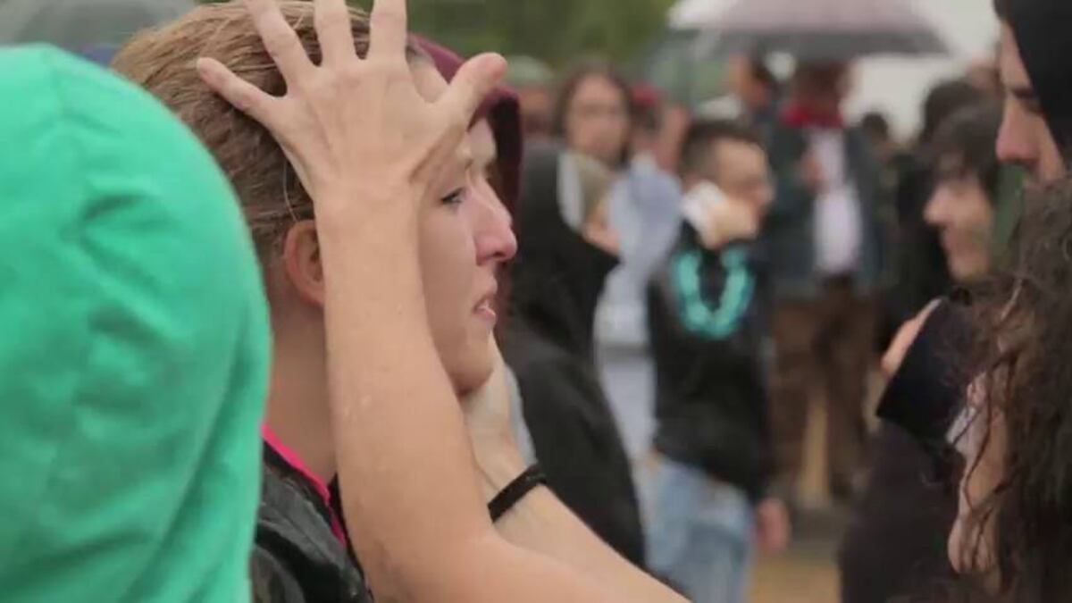 Los partidarios y los detractores de este evento se insultan y se enfrentan a voces con el resultado de una persona herida por el lanzamiento de una piedra