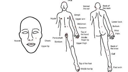 Smith eligió 25 puntos de su cuerpo para picarse tres veces en cada sitio y evaluar el dolor sentido en una escala de 1 a 10 usando un picotazo en el antebrazo como zona de control y referencia. Durante su experimento, se administró cinco picotazos de abeja diarios durante 38 días, en lugares con sensibilidad muy distinta, como la planta del pie, el pezón, el escroto, la nalga y en lo alto de la cabeza. Finalmente, los puntos menos dolorosos —para Smith— fueron el cráneo, la punta del dedo corazón del pie y el brazo (los tres puntuaron 2,3 sobre 10). Los más dolorosos: el tallo del pene (7,3), el labio superior (8,7) y la aleta de la nariz (9).