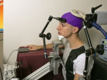 Primero lo experimentaron con ellos mismos. En 2013, Rao tuvo que pensar en pulsar el ratón de un ordenador. Llevaba en su cabeza un gorro de un sistema de electroencefalografía (EEG) que recogía la actividad eléctrica de su cerebro. El BCI había sido entrenado para detectar las ondas relacionadas con ese deseo de pulsar, un deseo que, convertido en bits, llegó por internet hasta Stocco, ubicado en otro edificio de la universidad a más de un kilómetro de distancia. Sobre su cabeza había esta vez una máquina de estimulación magnética transcraneal (EMT).