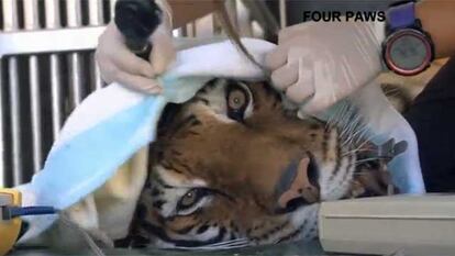 Varvara, una hembra de 12 años, es trasladada al centro de felinos que gestiona una ONG en Alemania tras la prohibición de espectáculos con animales salvajes en los circos búlgaros