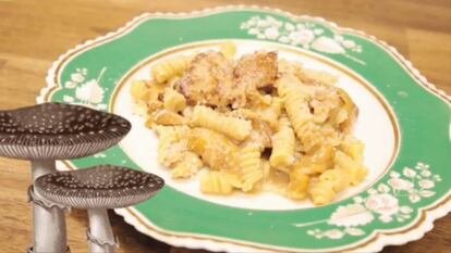 Estamos en plena época de setas, frutos secos y cursiladas otoñales. Rendimos homenaje a las tres cosas en una pasta cocinada de una forma poco convencional: como un risotto.