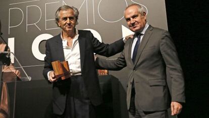 El filósofo francés Bernard-Henri Levy, que protagonizó una de las portadas más icónicas de la revista ICON, recibió ayer el galardón del Pensamiento de la mano del director de EL PAÍS, Antonio Caño, uno de los premios que ha concedido la publicación que cumple dos años. En su intervención, el pensador alertó sobre el peligro del proceso independentista catalán en una Europa que está “a punto de deshacerse”.