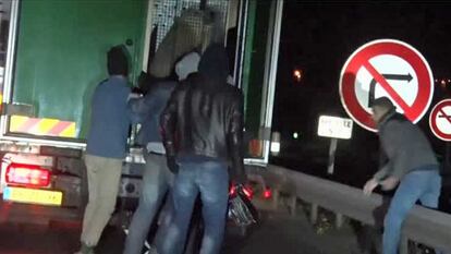 Una cámara capta el inusual momento en que un grupo de hombres abre la puerta trasera para esconderse en el vehículo en Calais (Francia) y hallan al animal, que viajaba de Rusia a Reino Unido