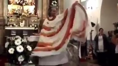 Frente al altar de una iglesia Católica un sacerdote baila y ondea su sotana mientras el coro canta Aleluya. Su vestimenta tiene detalles de color rojo parecidos a los de los trajes típicos mexicanos. Mientras el cura baila, algunos feligreses aplauden. Esta imagen se ha hecho popular en los últimos días y el cura ha sido nombrado #LadyPadre en las redes sociales. Según la publicación original hecha Facebook, este sacerdote celebra de esta forma sus misas en Monterrey (Estado de Nuevo León, norte de México) y el vídeo fue captado en septiembre de este año. Algunos párrocos en México se presentan de una forma peculiar para atraer más asistentes a su culto. Entre ellos están un sacerdote en Saltillo (Estado de Coahulia) que repartía agua bendita con una pistola de agua y otro en León (Estado de Guanajuato) que explica la Biblia ayudado por su muñeco ventrílocuo.