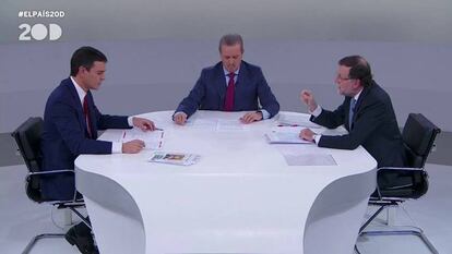 Rajoy y Sánchez se enzarzan en su debate cara a cara. Los candidatos del PP y del PSOE se enfrentaron en el único cara a cara de la campaña electoral, organizado por la Academia de Televisión y moderado por Manuel Campo Vidal. Pedro Sánchez acorraló a Rajoy con la corrupción (“Usted no es decente”, le dijo) y el presidente respondió a su oponente tachándole de "ruin, mezquino y deleznable".