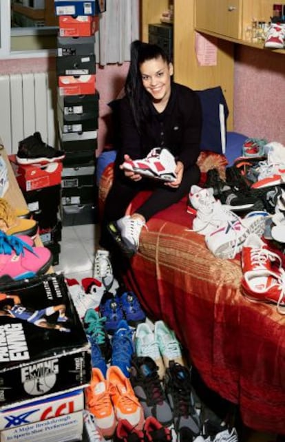 Mónica trabaja, pero invierte buena parte de su sueldo de mileurista en zapatillas. Tiene 29 años y reside con su padre, su madre y su hermano en Torrejón de Ardoz, una localidad de la periferia madrileña, en un piso que ilustra a la perfección la desmesura de este mundillo. Es una vivienda modesta, donde vive una madre que no trabaja y un padre que cargó durante años maletas en aviones de Iberia. La habitación de Mónica está repleta de tesoros. Allí, en un espacio de tres por cuatro metros, guarda, debajo de la cama de niña que ya no es, unos 150 pares de marca nuevas o seminuevas; un dineral.