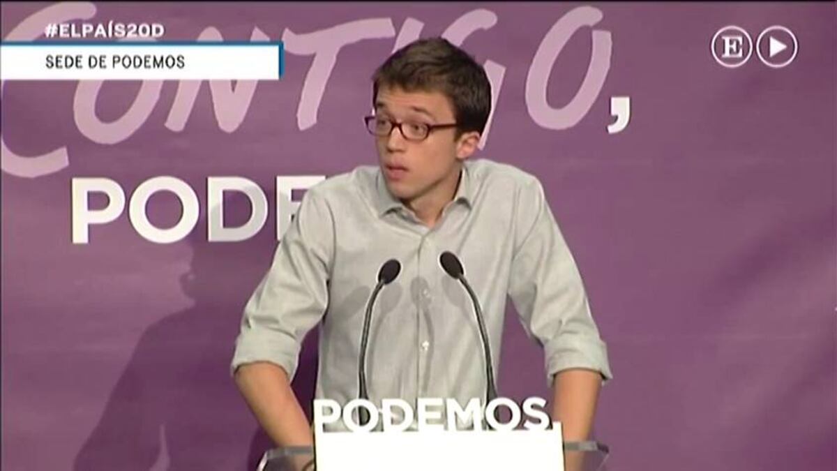 Para el secretario de Política de Podemos, Íñigo Errejón, su formación ha protagonizado "una remontada que a nuestro entender se va a estudiar en la historia política de España". "Se nota la diferencia entre el marketing y la realidad, creemos que claramente nos han beneficiado en los debates", ha afirmado en el Teatro Goya de Madrid. "Hemos cerrado una etapa política de la historia de nuestro país", ha concluido.
