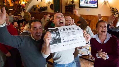 El Gordo inunda de millones Roquetas de Mar. El 79140 ha dejado más de 450 millones de euros del primer premio de la Lotería de Navidad en la localidad almeriense de Roquetas de Mar. El sorteo ha sido especialmente generoso con Andalucía, donde también ha caído buena parte del segundo premio (12775). Además de en Osuna y Cazalla de la Sierra, ambos en Sevilla, el segundo premio se vendió en Roda de Berà, en Tarragona, agraciado con 18 millones de euros, repartidos entre los trabajadores de un geriátrico. La suerte volvió a una gasolinera de Tenerife, que vendió entre sus clientes un cuarto y dos quintos, después de haber entregado dos segundos en los sorteos de 2013 y 2014.