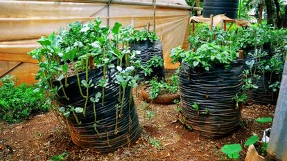 El centro colabora con el Ministerio de Agricultura y experimenta con nuevas técnicas de producción agrícola que necesitan menos terreno y agua para facilitar que, en el poco espacio libre que hay en Dagoretti, las familias puedan cultivar un huerto. Por ejemplo, en una zona de la granja se ven grandes bolsas de plástico de las que salen, a través de agujeros practicados en los laterales, las hojas de tubérculos comestibles.
