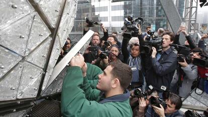 Es una de las imágenes que se repiten cada 1 de enero en televisiones y webs de todo el mundo. La bola de Times Square, en Nueva York, bajando para dar la bienvenida al Año Nuevo. Y este año brillará más que nunca. La icónica esfera, cuya tradición se remonta a más de un siglo, contará con 288 nuevos triángulos de cristal. Estos se añadirán a los 2.112 ya existentes para iniciar un descenso de un minuto cuando el alcalde neoyorquino, Bill de Blasio, y un invitado sorpresa activen el botón que da inicio a la cuenta atrás para arrancar 2016. Alrededor de un millón de personas se concentrarán en la plaza más emblemática de Manhattan y sus alrededores para ver sus destellos y corear al unísono los últimos segundos de 2015. En el conjunto del mundo, se calcula que la audiencia a través de las pantallas superará los mil millones de personas.
