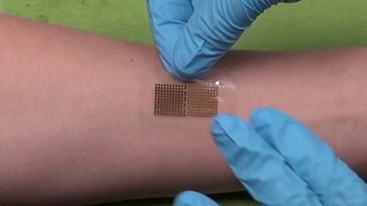 Se trata de un Holter, una grabadora que registra la actividad cardíaca de los pacientes para ayudar al diagnóstico de posibles enfermedades. Aunque es cada vez más pequeño, su diseño puede resultar incómodo o aparatoso. Para solucionar este problema, un grupo de científicos ha creado una pegatina. Mide cuatro centímetros y se adhiere a la parte interior del antebrazo, a la altura de la muñeca. Según los investigadores, recoge la misma información que un electrocardiograma. Su estudio se acaba de publicar en la revista Science Advances.