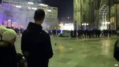 Un periódico local alemán ha publicado un vídeo grabado con un móvil que muestra las escenas que se vivieron alrededor de la estación alemana de Colonia, en Nochevieja, en la que hubo una oleada de agresiones machistasa mujeres. Alrededor de 90 mujeres denunciaron haber sido robadas, amenazadas o abusadas sexualmente. Has el momento, las autoridades han identificado a 31 sospechosos, entre los cuales se incluyen 18 solicitantes de asilo. Las imágenes muestran una multitud de personas, la mayoría jóvenes, lanzando fuegos artificiales en los alrededores de la catedral de la ciudad germana. El vídeo no registra agresiones, aunque sí el ambiente que se vivía en la noche en la que las mujeres denunciaron haber sido atacadas.